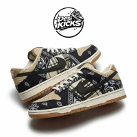 The Dunk Low Travis Scott delivers a unique fusion of bandana print, plaid graphics, and earthy tones — creating one of the most distinctive Dunk designs in the streetwear world. Premium suede overlays blend smoothly with canvas textures, while rope-style laces and detailed pattern work make the sneaker instantly recognizable. Built for comfort and visual impact, this pair completes both casual and hype-driven outfits, giving any rotation a bold statement piece packed with Travis Scott–inspired flair.