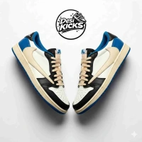 The Travis Scott Fragment Low brings together two cult-favorite forces in sneaker culture — Travis Scott and Fragment — resulting in a sleek low-top sneaker built for modern streetwear. Featuring a bold Black and Blue upper with Sail accents and the iconic reverse Swoosh, the sneaker delivers hype-driven visuals with premium execution.